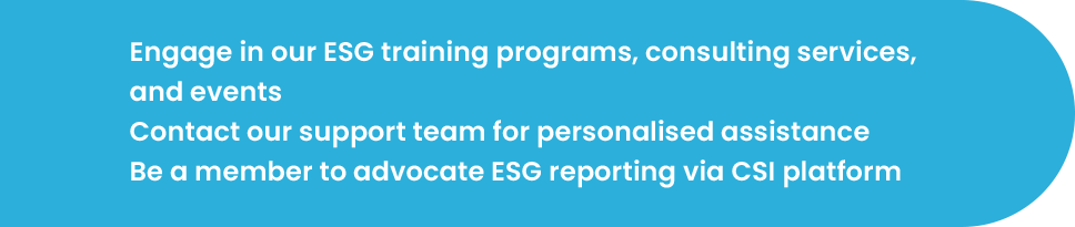 IGTI invites Small and Medium Enterprises (SMEs) to participate in the CSI community. Utilising the CSI platform provided by Bursa Malaysia, IGTI facilitates your ESG reporting needs. Our tailored support and tools are designed to enhance your sustainability efforts and help you achieve your Environmental, Social, and Governance (ESG) goals.